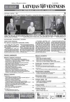 Šī laidiena elektroniskajai versijai ir informatīvs raksturs. Oficiālā publikācija pieejama laikraksta "Latvijas Vēstnesis" drukas versijā. Piedāvājam lejuplādēt digitalizētā laidiena saturu (no Latvijas Nacionālās bibliotēkas krājuma).