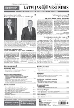 Šī laidiena elektroniskajai versijai ir informatīvs raksturs. Oficiālā publikācija pieejama laikraksta "Latvijas Vēstnesis" drukas versijā. Piedāvājam lejuplādēt digitalizētā laidiena saturu (no Latvijas Nacionālās bibliotēkas krājuma).
