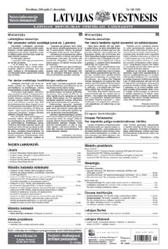 Šī laidiena elektroniskajai versijai ir informatīvs raksturs. Oficiālā publikācija pieejama laikraksta "Latvijas Vēstnesis" drukas versijā. Piedāvājam lejuplādēt digitalizētā laidiena saturu (no Latvijas Nacionālās bibliotēkas krājuma).