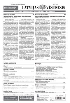 Šī laidiena elektroniskajai versijai ir informatīvs raksturs. Oficiālā publikācija pieejama laikraksta "Latvijas Vēstnesis" drukas versijā. Piedāvājam lejuplādēt digitalizētā laidiena saturu (no Latvijas Nacionālās bibliotēkas krājuma).