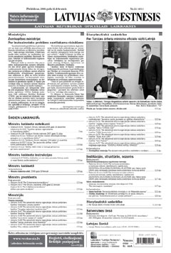 Šī laidiena elektroniskajai versijai ir informatīvs raksturs. Oficiālā publikācija pieejama laikraksta "Latvijas Vēstnesis" drukas versijā. Piedāvājam lejuplādēt digitalizētā laidiena saturu (no Latvijas Nacionālās bibliotēkas krājuma).