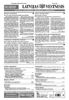 Oficiālais laikraksts "Latvijas Vēstnesis", 16.04.2009., Nr. 58 https://www.vestnesis.lv/laidiens/2009/04/16/nr/58