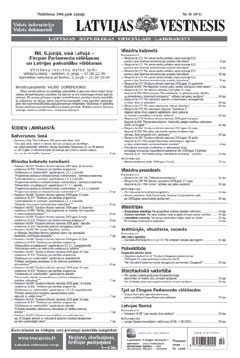 Šī laidiena elektroniskajai versijai ir informatīvs raksturs. Oficiālā publikācija pieejama laikraksta "Latvijas Vēstnesis" drukas versijā. Piedāvājam lejuplādēt digitalizētā laidiena saturu (no Latvijas Nacionālās bibliotēkas krājuma).