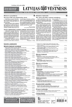 Šī laidiena elektroniskajai versijai ir informatīvs raksturs. Oficiālā publikācija pieejama laikraksta "Latvijas Vēstnesis" drukas versijā. Piedāvājam lejuplādēt digitalizētā laidiena saturu (no Latvijas Nacionālās bibliotēkas krājuma).
