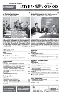 Šī laidiena elektroniskajai versijai ir informatīvs raksturs. Oficiālā publikācija pieejama laikraksta "Latvijas Vēstnesis" drukas versijā. Piedāvājam lejuplādēt digitalizētā laidiena saturu (no Latvijas Nacionālās bibliotēkas krājuma).