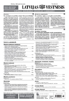 Šī laidiena elektroniskajai versijai ir informatīvs raksturs. Oficiālā publikācija pieejama laikraksta "Latvijas Vēstnesis" drukas versijā. Piedāvājam lejuplādēt digitalizētā laidiena saturu (no Latvijas Nacionālās bibliotēkas krājuma).