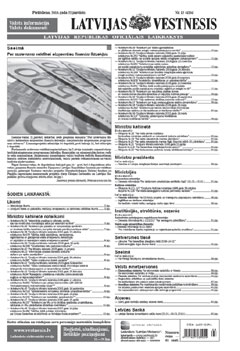 Šī laidiena elektroniskajai versijai ir informatīvs raksturs. Oficiālā publikācija pieejama laikraksta "Latvijas Vēstnesis" drukas versijā. Piedāvājam lejuplādēt digitalizētā laidiena saturu (no Latvijas Nacionālās bibliotēkas krājuma).