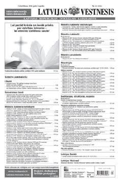 Šī laidiena elektroniskajai versijai ir informatīvs raksturs. Oficiālā publikācija pieejama laikraksta "Latvijas Vēstnesis" drukas versijā. Piedāvājam lejuplādēt digitalizētā laidiena saturu (no Latvijas Nacionālās bibliotēkas krājuma).