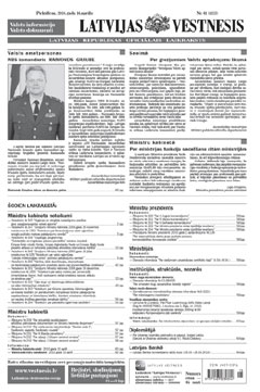 Šī laidiena elektroniskajai versijai ir informatīvs raksturs. Oficiālā publikācija pieejama laikraksta "Latvijas Vēstnesis" drukas versijā. Piedāvājam lejuplādēt digitalizētā laidiena saturu (no Latvijas Nacionālās bibliotēkas krājuma).