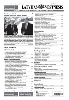 Šī laidiena elektroniskajai versijai ir informatīvs raksturs. Oficiālā publikācija pieejama laikraksta "Latvijas Vēstnesis" drukas versijā. Piedāvājam lejuplādēt digitalizētā laidiena saturu (no Latvijas Nacionālās bibliotēkas krājuma).