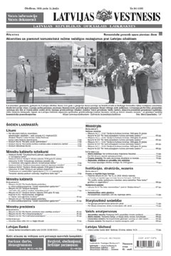 Šī laidiena elektroniskajai versijai ir informatīvs raksturs. Oficiālā publikācija pieejama laikraksta "Latvijas Vēstnesis" drukas versijā. Piedāvājam lejuplādēt digitalizētā laidiena saturu (no Latvijas Nacionālās bibliotēkas krājuma).