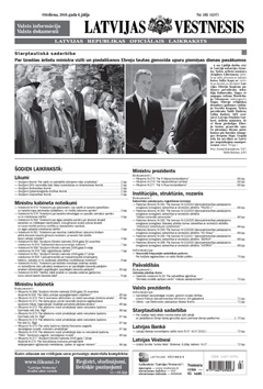 Šī laidiena elektroniskajai versijai ir informatīvs raksturs. Oficiālā publikācija pieejama laikraksta "Latvijas Vēstnesis" drukas versijā. Piedāvājam lejuplādēt digitalizētā laidiena saturu (no Latvijas Nacionālās bibliotēkas krājuma).