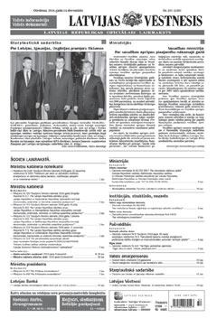 Šī laidiena elektroniskajai versijai ir informatīvs raksturs. Oficiālā publikācija pieejama laikraksta "Latvijas Vēstnesis" drukas versijā. Piedāvājam lejuplādēt digitalizētā laidiena saturu (no Latvijas Nacionālās bibliotēkas krājuma).