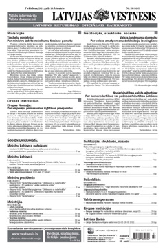 Šī laidiena elektroniskajai versijai ir informatīvs raksturs. Oficiālā publikācija pieejama laikraksta "Latvijas Vēstnesis" drukas versijā. Piedāvājam lejuplādēt digitalizētā laidiena saturu (no Latvijas Nacionālās bibliotēkas krājuma).