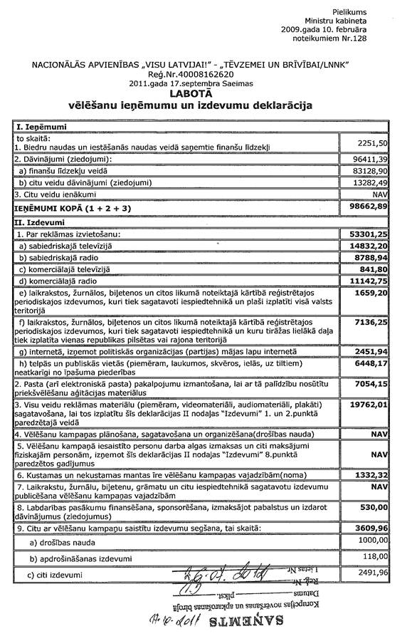 Saskaņas centrs Politisko organizāciju apvienība Darbības pārskati par 2011 gadu Labots...
