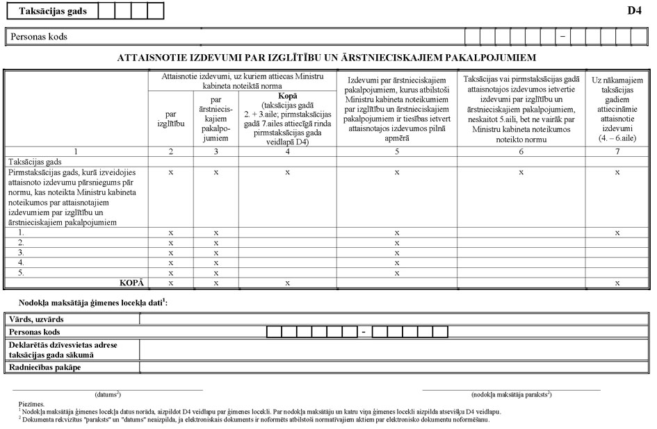 2.2.7. attaisnotie izdevumi par izglītību un ārstnieciskajiem pakalpojumiem D4 (turpmāk – D4 pielikums);
