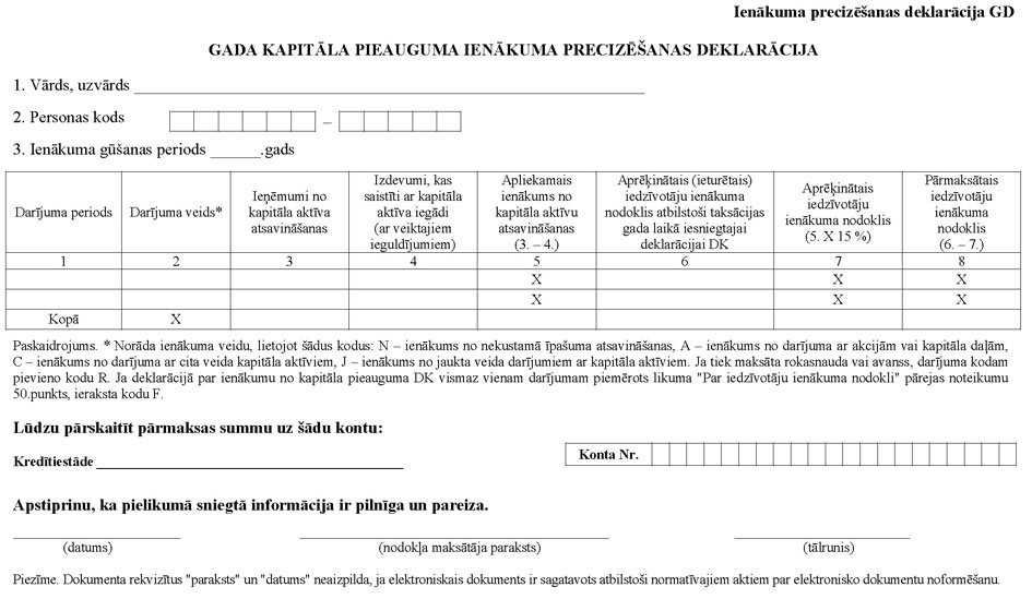 3.3. gada kapitāla pieauguma ienākuma precizēšanas deklarācija (turpmāk – ienākuma precizēšanas deklarācija GD).