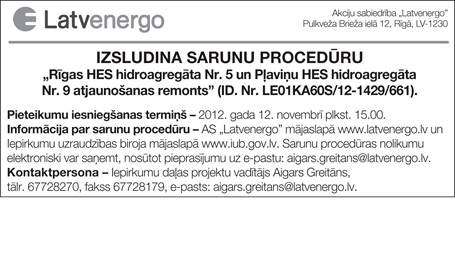AS "RĪGAS SILTUMS" izsludina atklātu konkursu Nr. RS12/198/AK par tiesībām noslēgt kalorimetriskās ierīces šķeldas un citu kurināmo siltumspējas noteikšanai piegādes līgumu. Iepazīties ar atklāta konkursa dokumentiem...