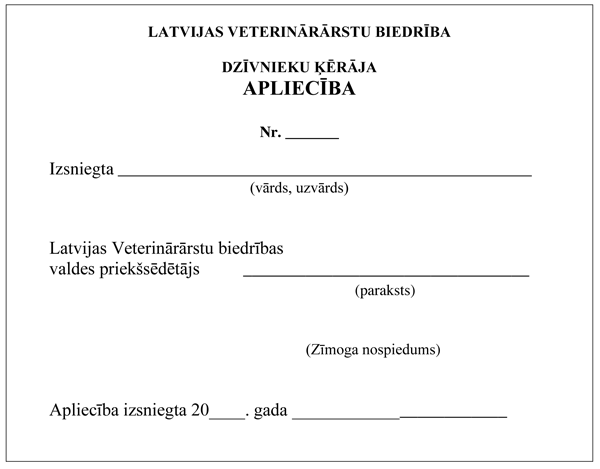 Dzīvnieku ķērāja apliecības paraugs