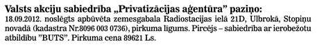 Privatizācijas ziņas: Šajā laidienā 7 Pēdējās nedēļas laikā 0 Visi