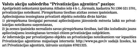 Privatizācijas ziņas: Šajā laidienā 6 Pēdējās nedēļas laikā 0 Visi
