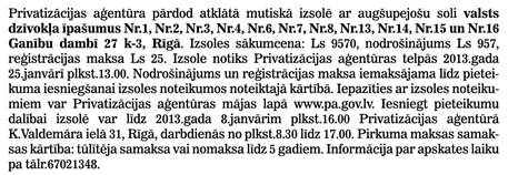 Privatizācijas ziņas: Šajā laidienā 3 Pēdējās nedēļas laikā 0 Visi