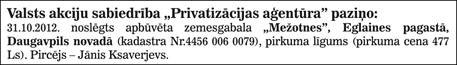Privatizācijas ziņas: Šajā laidienā 1 Pēdējās nedēļas laikā 0 Visi