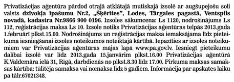 Privatizācijas ziņas: Šajā laidienā 2 Pēdējās nedēļas laikā 0 Visi