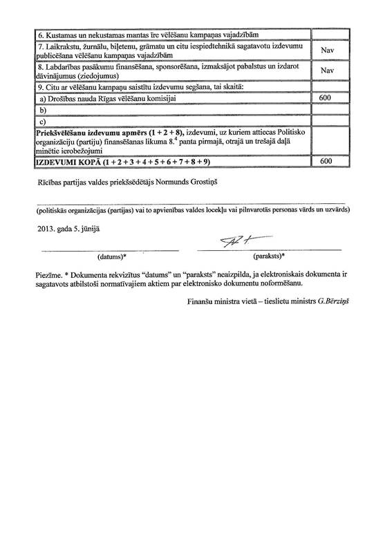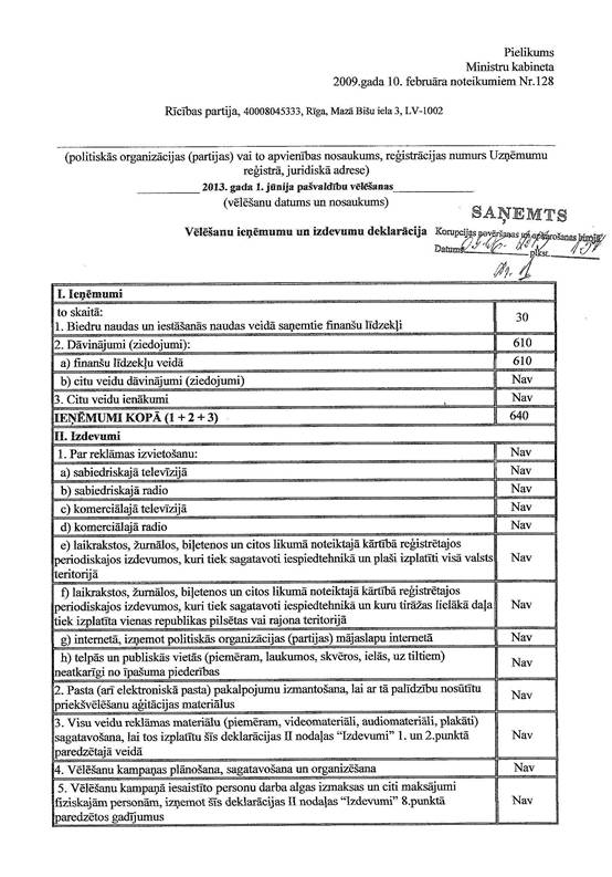Politiskās partijas "Rīcības partija" vēlēšanu ieņēmumu un izdevumu deklarācija