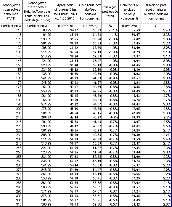 Piedāvātais tarifs varētu stāties spēkā no 2013. gada 1.oktobra. Tarifa izmaiņas ir saistītas ar mainīgo un pastāvīgo izmaksu izmaiņām, pārdotās siltumenerģijas apjoma izmaiņām, kurināmā un elektrības cenu izmaiņām, uzskaites ieviešanu, kas nodrošina precīzus enerģijas mērījumus, gan katlu mājā, gan klientu siltummezglos un tarifa pārapstiprināšanu atbilstoši spēkā esošajai tarifu metodikai, izdalot atsevišķi siltumenerģijas ražošanas tarifu, siltumenerģijas sadales un pārvades tarifu un siltumenerģijas tirdzniecības tarifu.