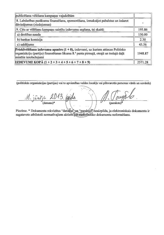 Politiskās partijas "DAUGAVPILS ATDZIMŠANA" 2013.gada 1.jūnija pašvaldību vēlēšanu ieņēmumu un izdevumu deklarācija