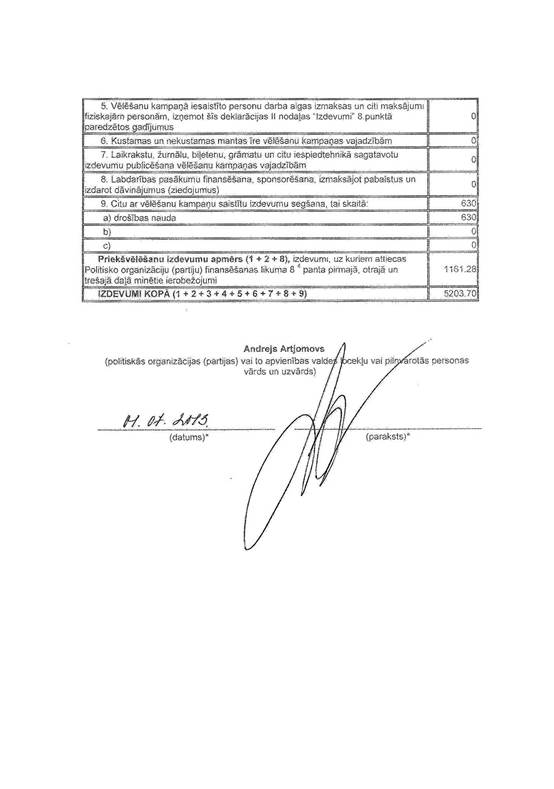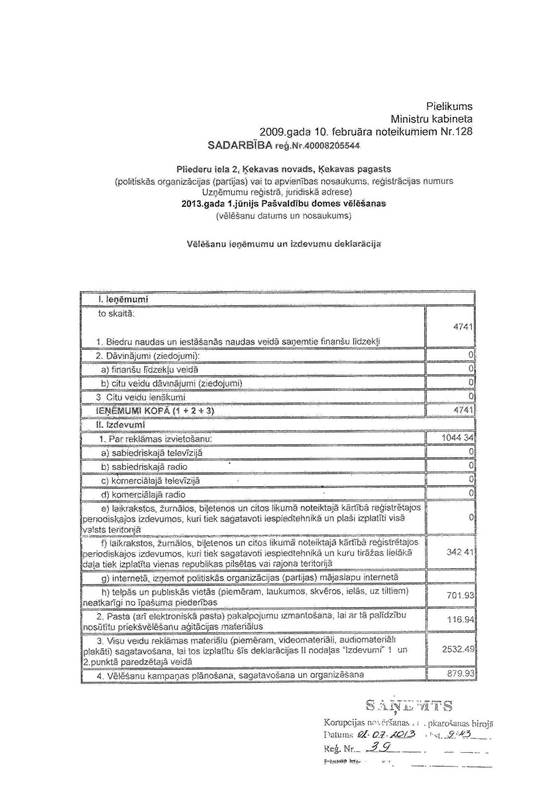 Politiskās partijas "Sadarbība" 2013.gada 2.jūlijā iesniegtā 2013.gada 1.jūnija pašvaldību vēlēšanu ieņēmumu un izdevumu deklarācija