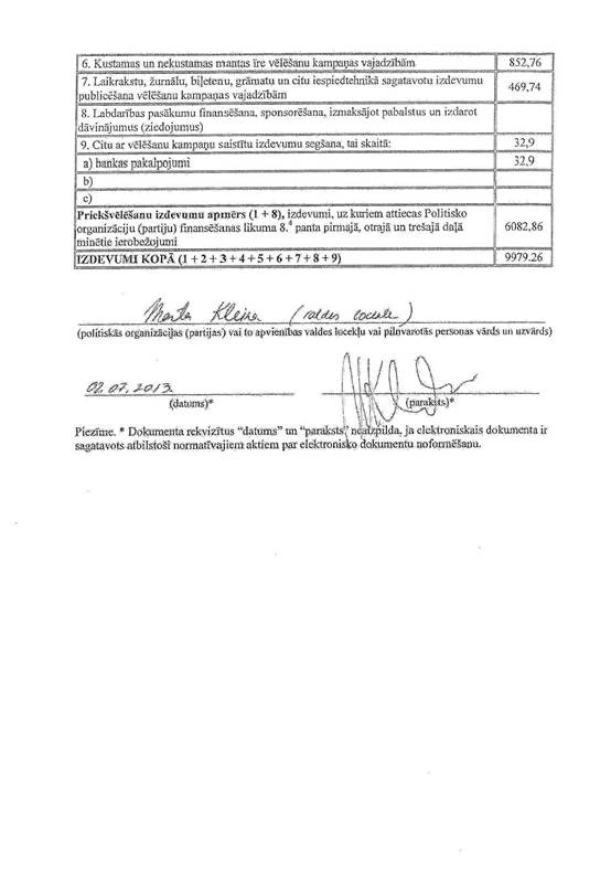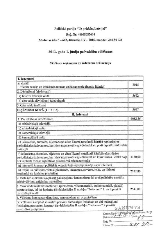 Politiskās partijas "Uz priekšu, Latvija!" 2013.gada 3.jūlijā iesniegtā 2013.gada 1.jūnija pašvaldību vēlēšanu ieņēmumu un izdevumu deklarācija