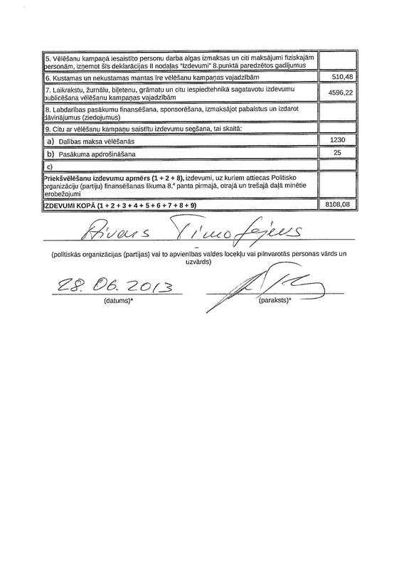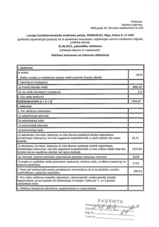Politiskās partijas "Latvijas Sociāldemokrātiskā strādnieku partija" 2013.gada 1.jūlijā iesniegtā 2013.gada 1.jūnija pašvaldību vēlēšanu ieņēmumu un izdevumu deklarācija