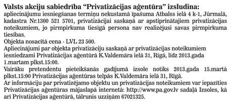 Privatizācijas ziņas: Šajā laidienā 5 Pēdējās nedēļas laikā 0 Visi