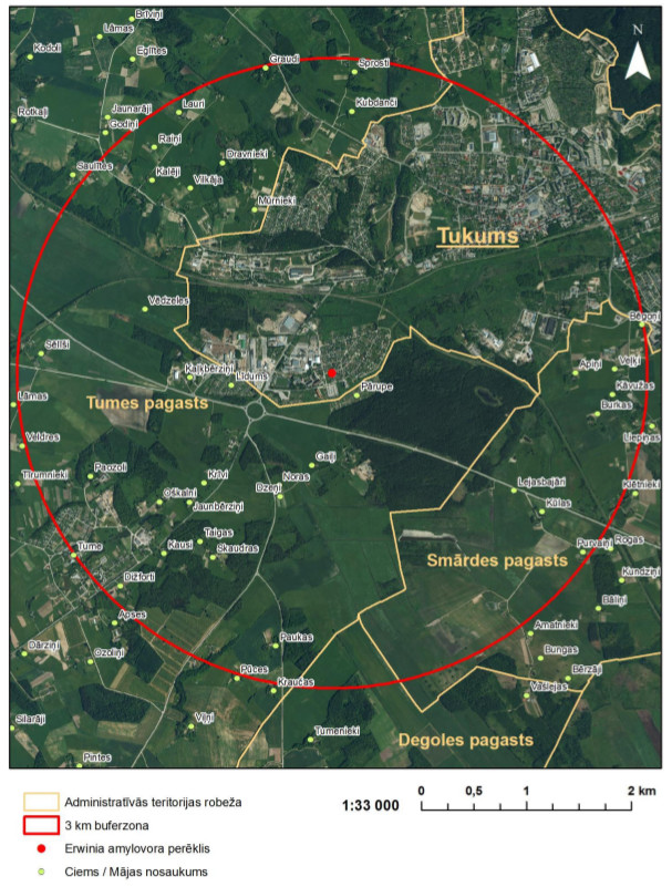 1. par bakteriālās iedegas Erwinia amylovora buferzonu teritoriju, kas norādīta lēmuma 2.pielikumā;