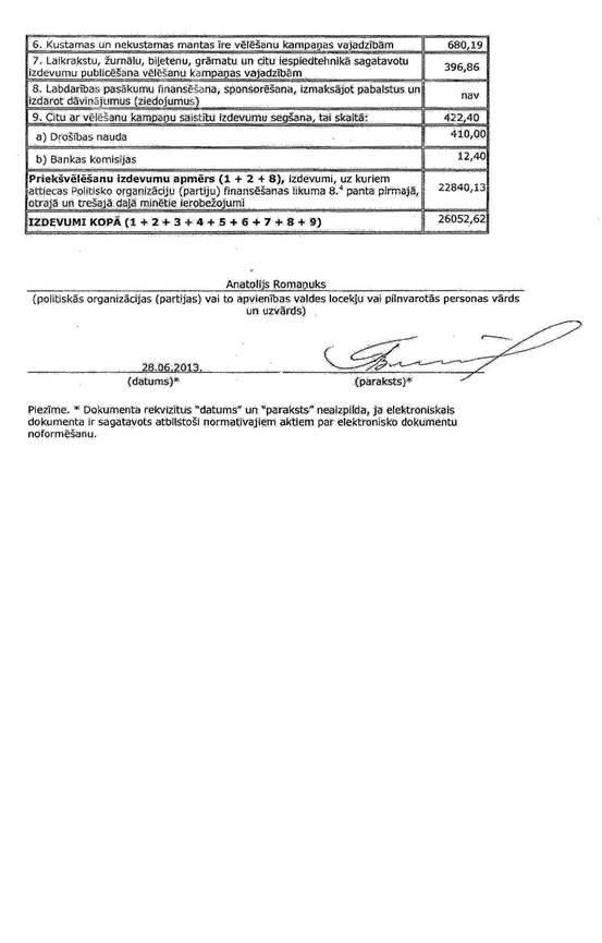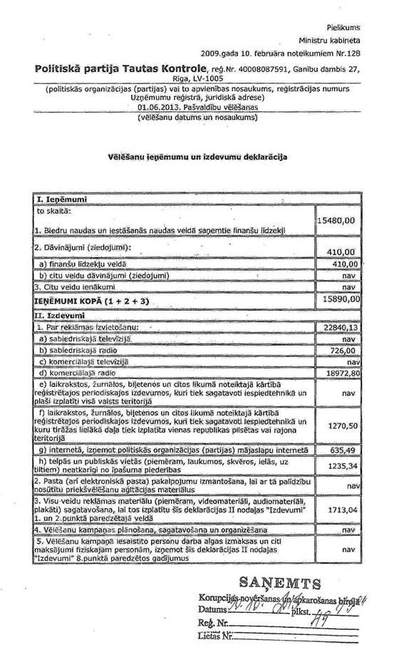 Politiskās partijas "Tautas kontrole" 2013.gada 1.jūnija pašvaldību vēlēšanu ieņēmumu un izdevumu deklarācija