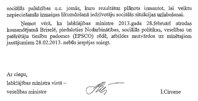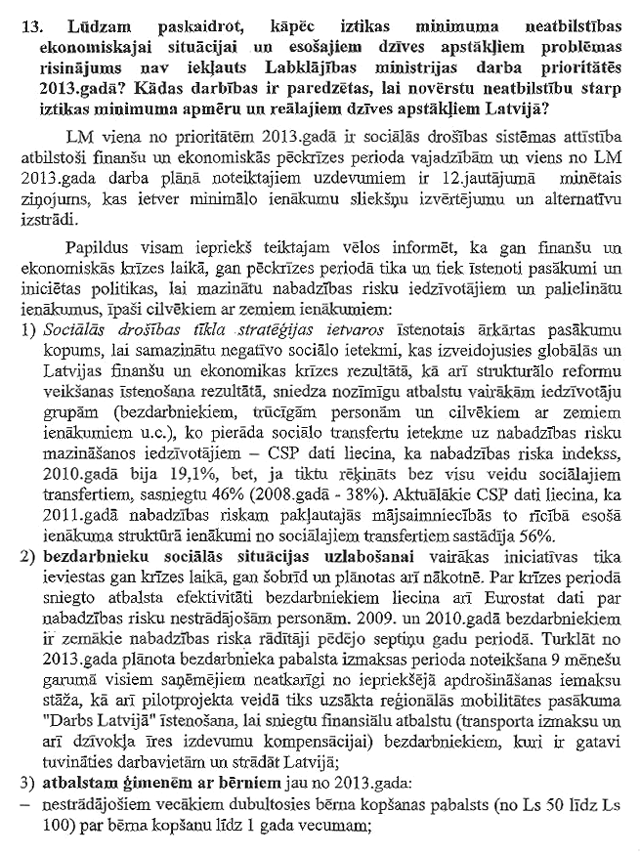 Atbildes sniegšana uz deputātu jautājumu 2013.gada 7.martā