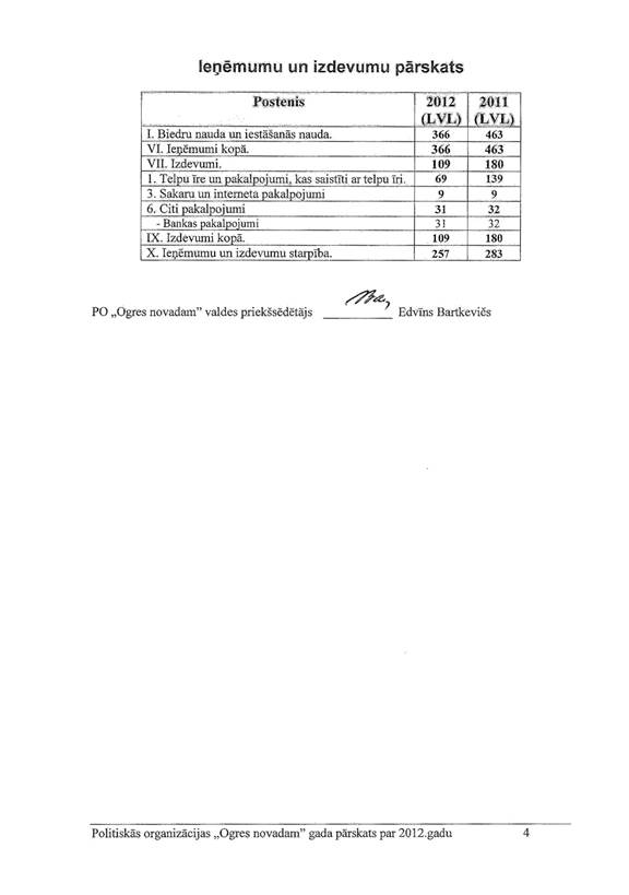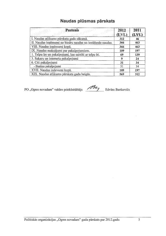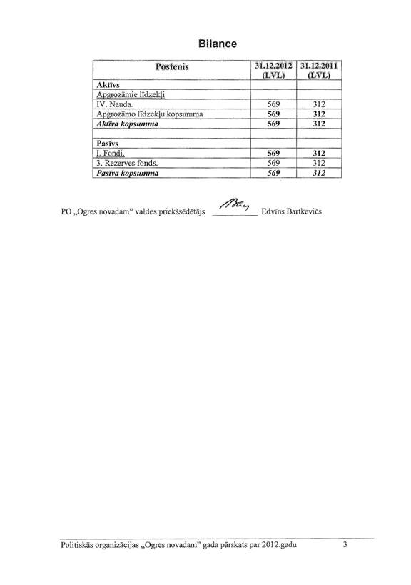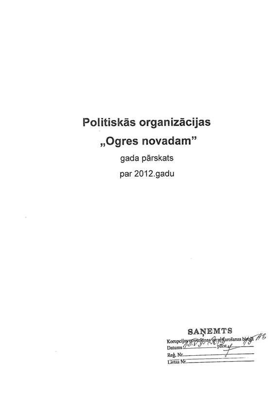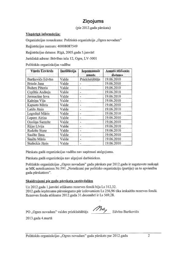 Politiskās organizācijas "Ogres novadam" gada pārskats par 2012.gadu