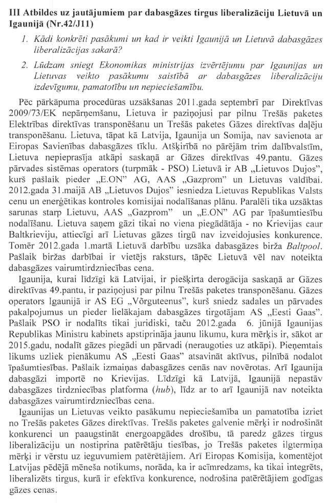 Rakstveidā sniegtās atbildes uz deputātu jautājumiem