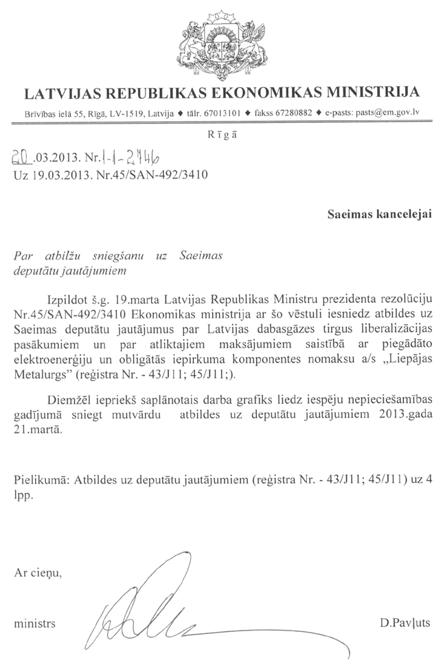 Savukārt tagad Saeimas Prezidijs ir saņēmis deputātu Elksniņa, Cvetkovas, Urbanoviča, Agešina un Rubika jautājumu ekonomikas ministram Danielam Pavļutam "Par Ekonomikas ministrijas sagatavotajiem politikas plānošanas dokumentu un tiesību aktu projektiem un to īstenošanu". Jautājums tiks nodots ekonomikas ministram.