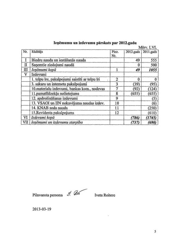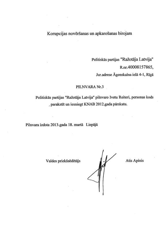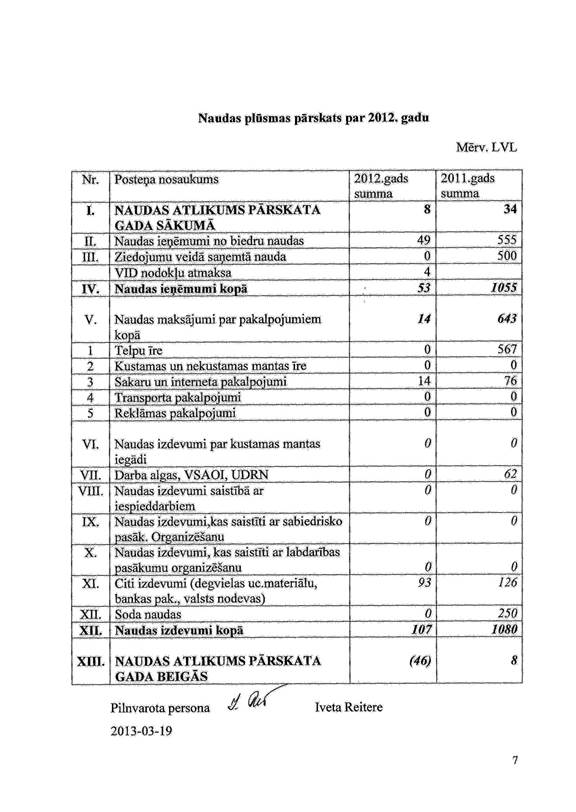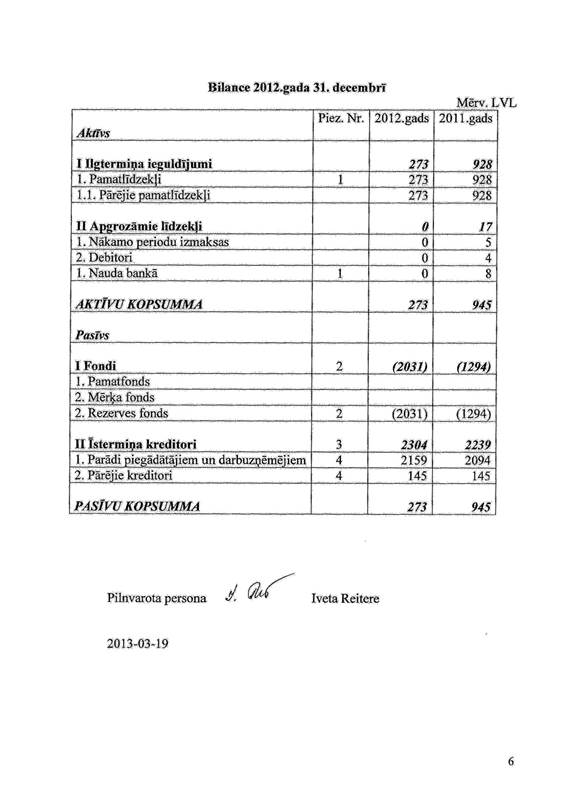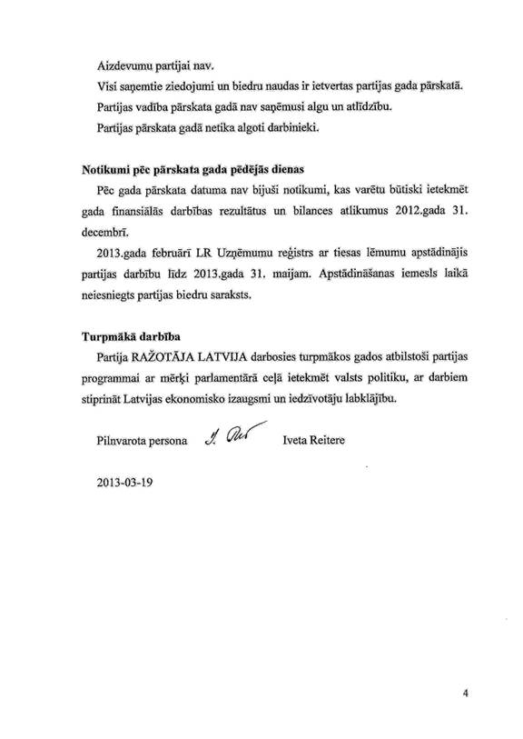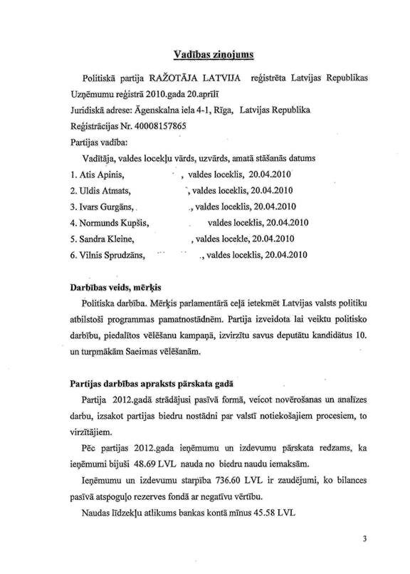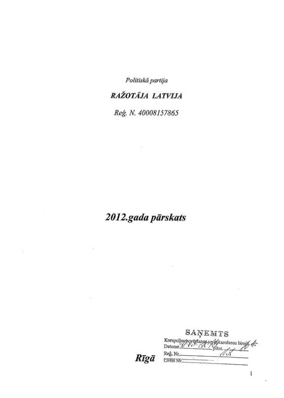 Politiskās partijas "Ražotāja Latvija" 2012.gada pārskats