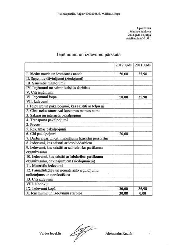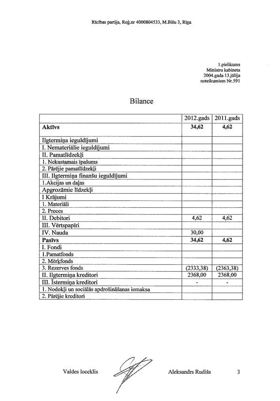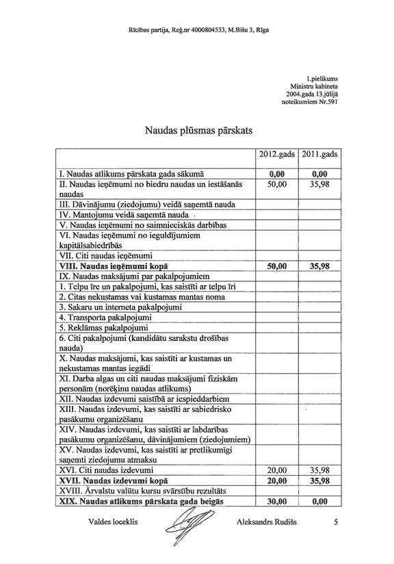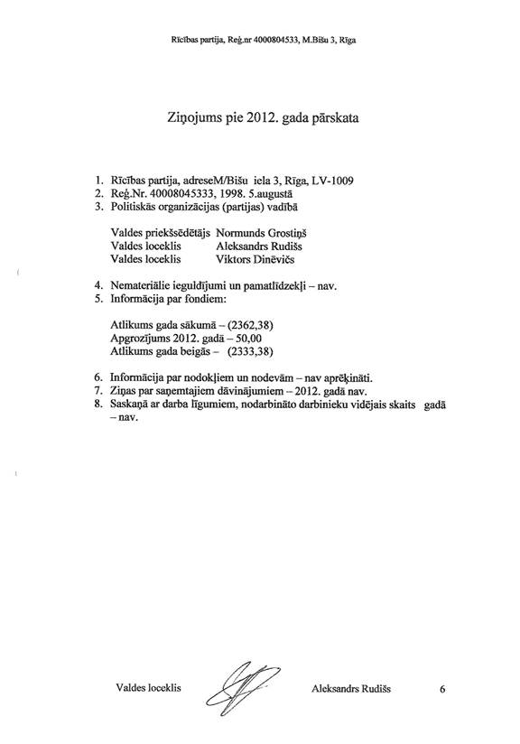Politiskās partijas "Rīcības partija" 2012.gada pārskats