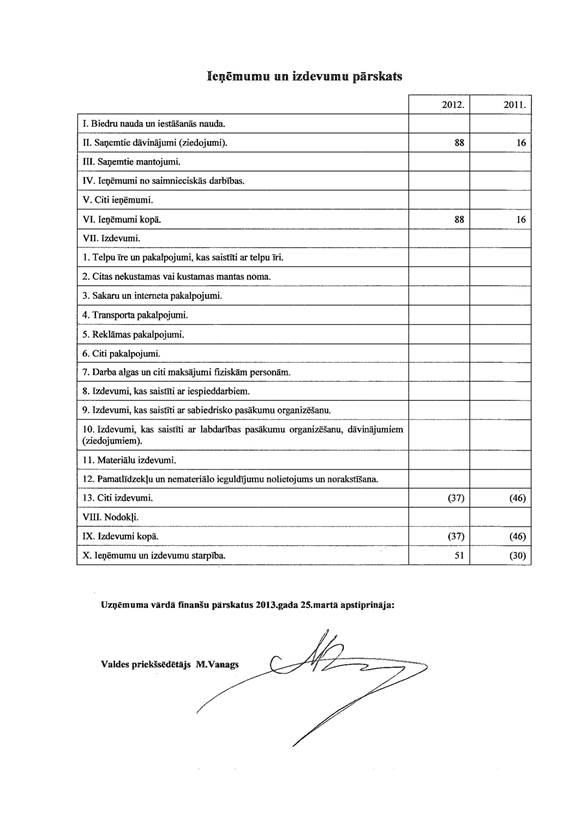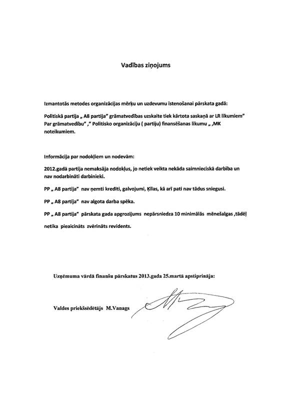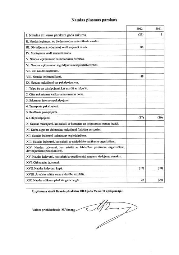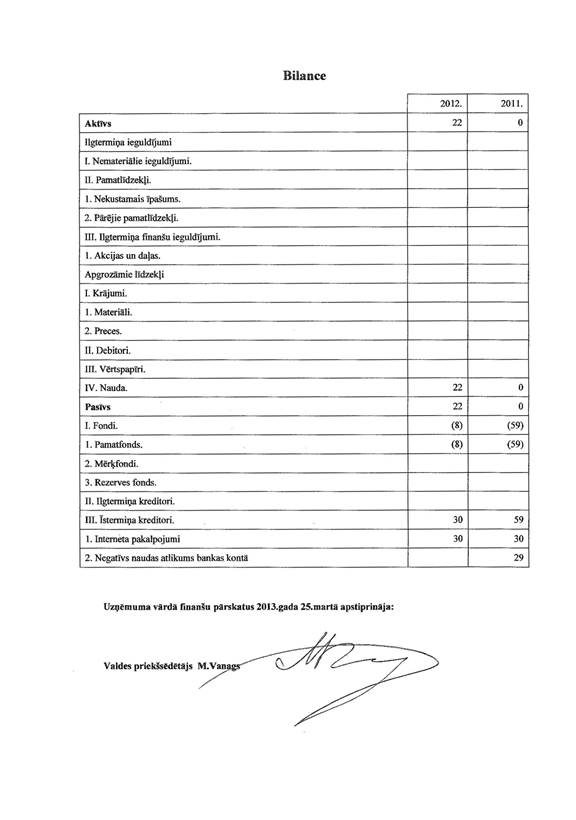 Gada pārskats, kas sagatavots saskaņā ar Latvijas likumdošanas prasībām, par gadu, kas noslēdzās 2012.gada 31.decembrī