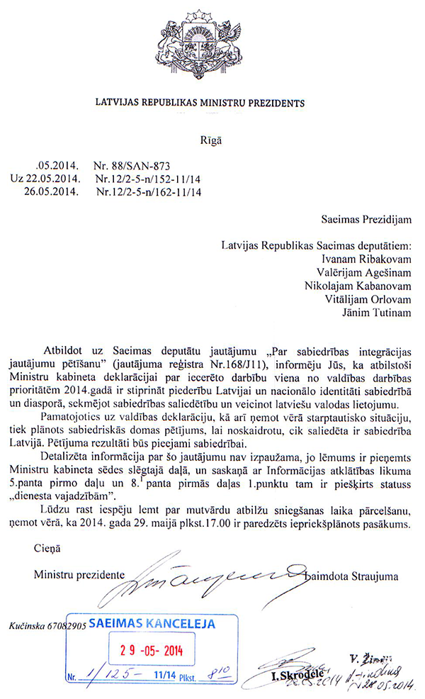 Atbildes uz deputātu iesniegtajiem jautājumiem 2014.gada 29.maijā