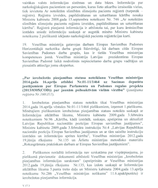 A.Judins. 3. – Veselības ministrijas parlamentārā sekretāra Putniņa priekšlikums papildina sarakstu ar vēl vienu jaunu vielu grupu. Ir atbalstīts.