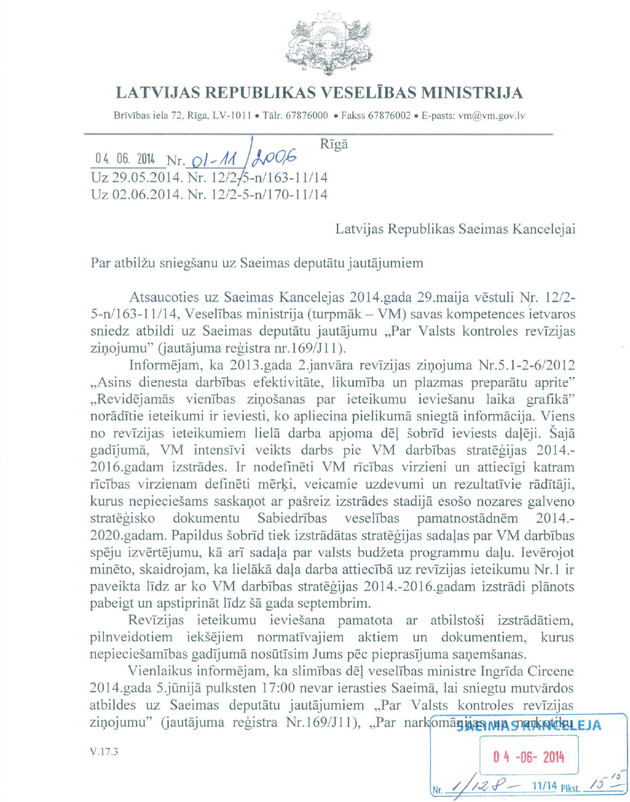 Sēdes vadītāja. Labrīt, cienījamie kolēģi! Sākam mūsu pavasara sesijas pēdējo sēdi. Un tradicionāli kā pirmais jautājums ir Latvijas Valsts prezidenta Andra Bērziņa uzruna.