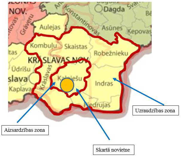 1. Karantīnu ar aizsardzības zonu (Krāslavas novada Kalniešu pagasts) (skatīt rīkojuma pielikumu);
