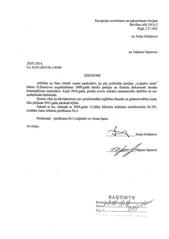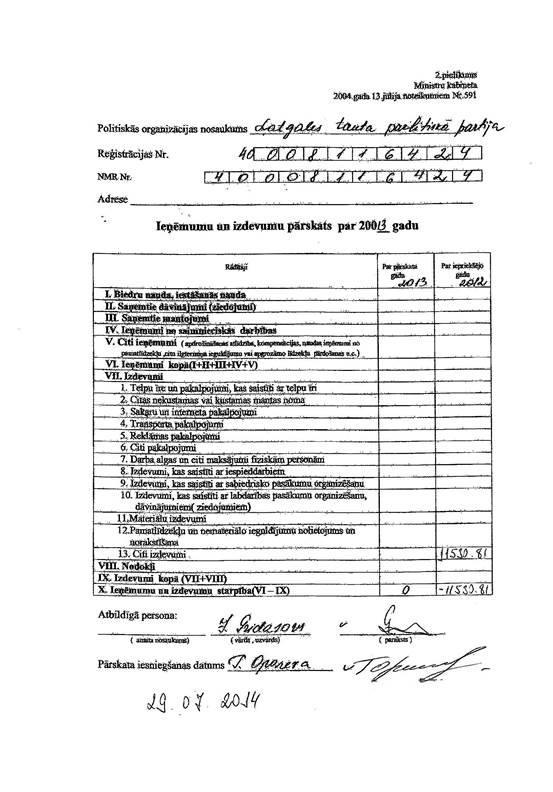 Politiskās partijas "Latgales tauta", reģ.Nr.40008116424, 2014.gada 4.augustā iesniegtais precizēts Ieņēmumu un izdevumu pārskats par 2013.gadu