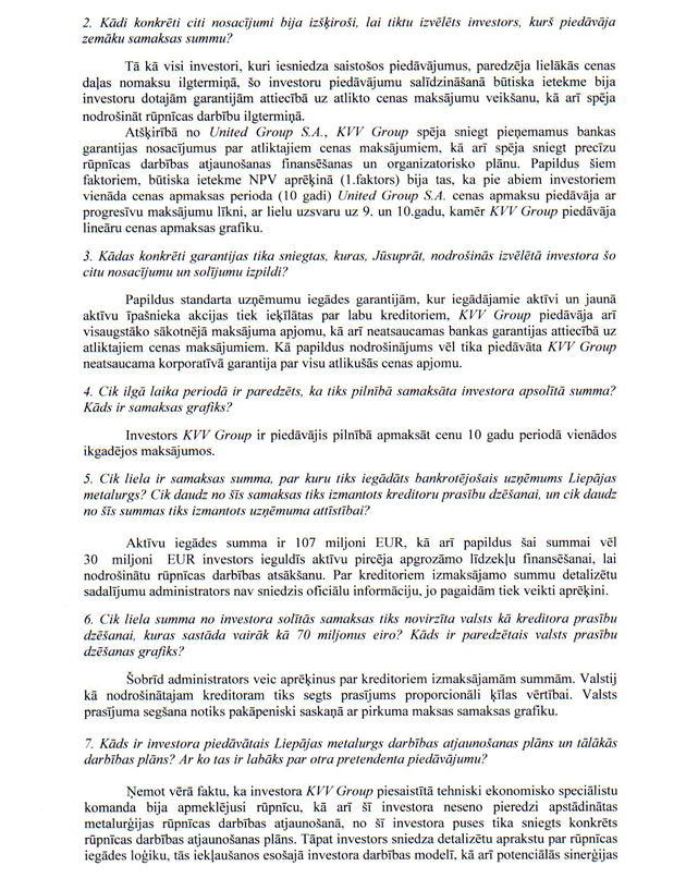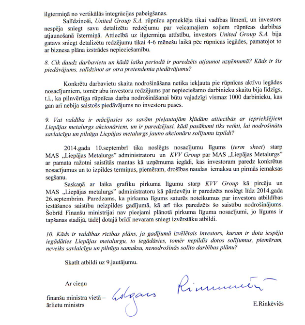 Un tieši tāpat ir arī ar vēl vienu tādu pašu jautājumu "Par "Liepājas metalurga" pārdošanu". Arī uz to finanšu ministrs Vilks bija gatavs ierasties... taču arī šī atbilde apmierina iesniedzējus.